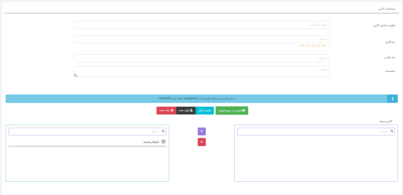 پس از بارگذاری محتوا و ذخیره گالری، گالری شما آماده نمایش در سایت خواهد بود.